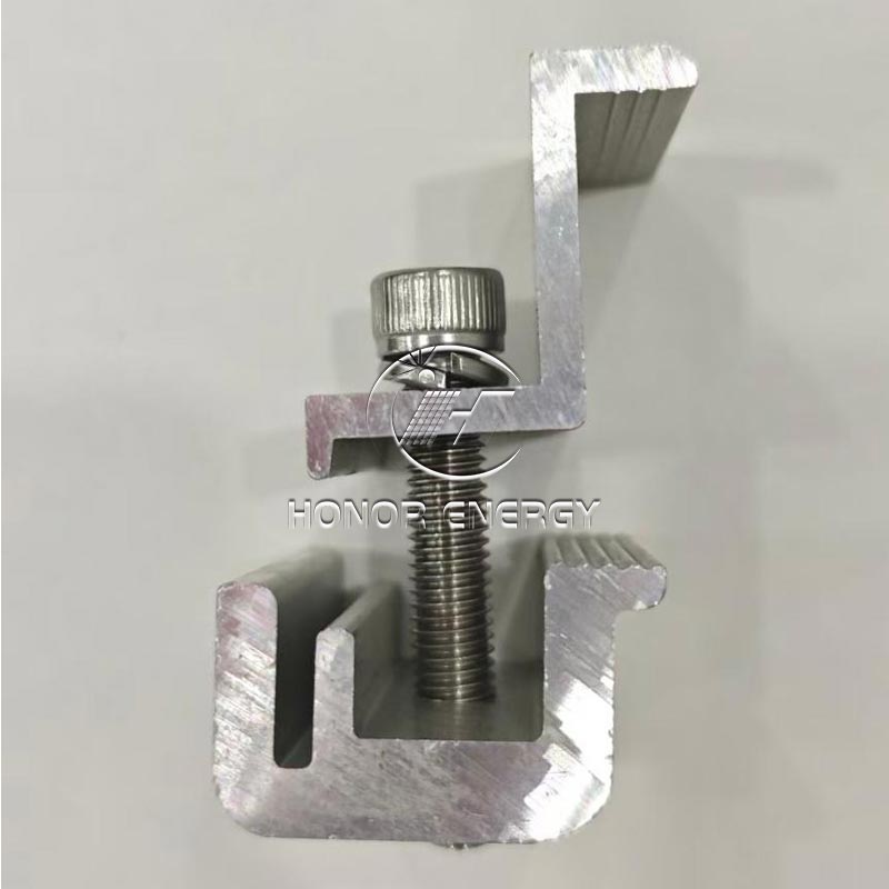 ເຂັມຂັດປາຍແສງຕາເວັນທີ່ບໍ່ມີການເຈາະ ເຮັດວຽກໂດຍການລວມຕົວຍຶດ ແລະ bolts ເພື່ອຮັກສາຂອບຂອງແຜງແສງອາທິດໃຫ້ແໜ້ນ. ຮອງຮັບ rails. ການຕິດຕັ້ງນີ້ມີປະສິດທິພາບດຸ່ນດ່ຽງນ້ໍາຫນັກຂອງແຜງດ້ວຍຕົນເອງແລະຈັດການກັບກໍາລັງພາຍນອກເຊັ່ນ: ລົມ ແລະການໂຫຼດຫິມະ.